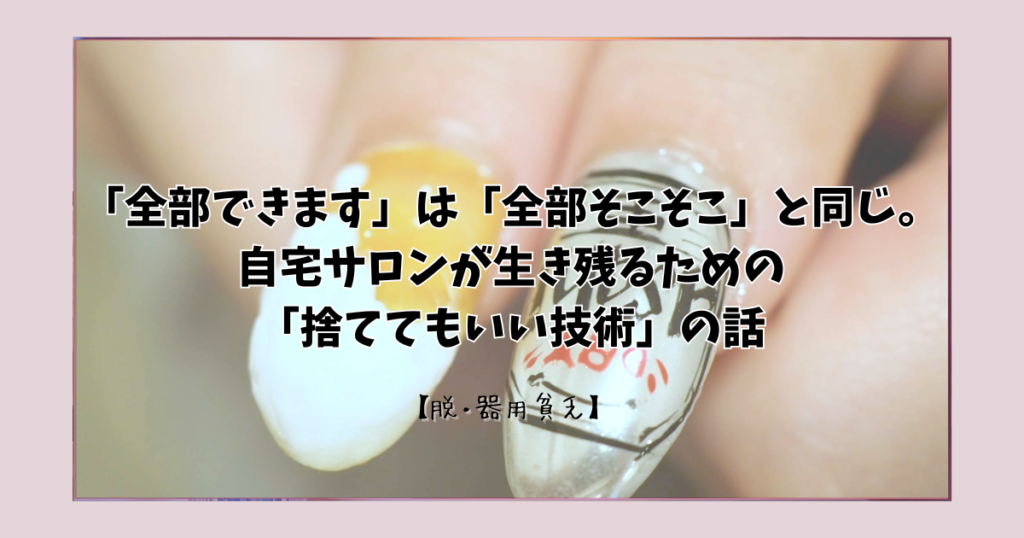【脱・器用貧乏】「全部できます」は「全部そこそこ」と同じ。自宅サロンが生き残るための「捨ててもいい技術」の話